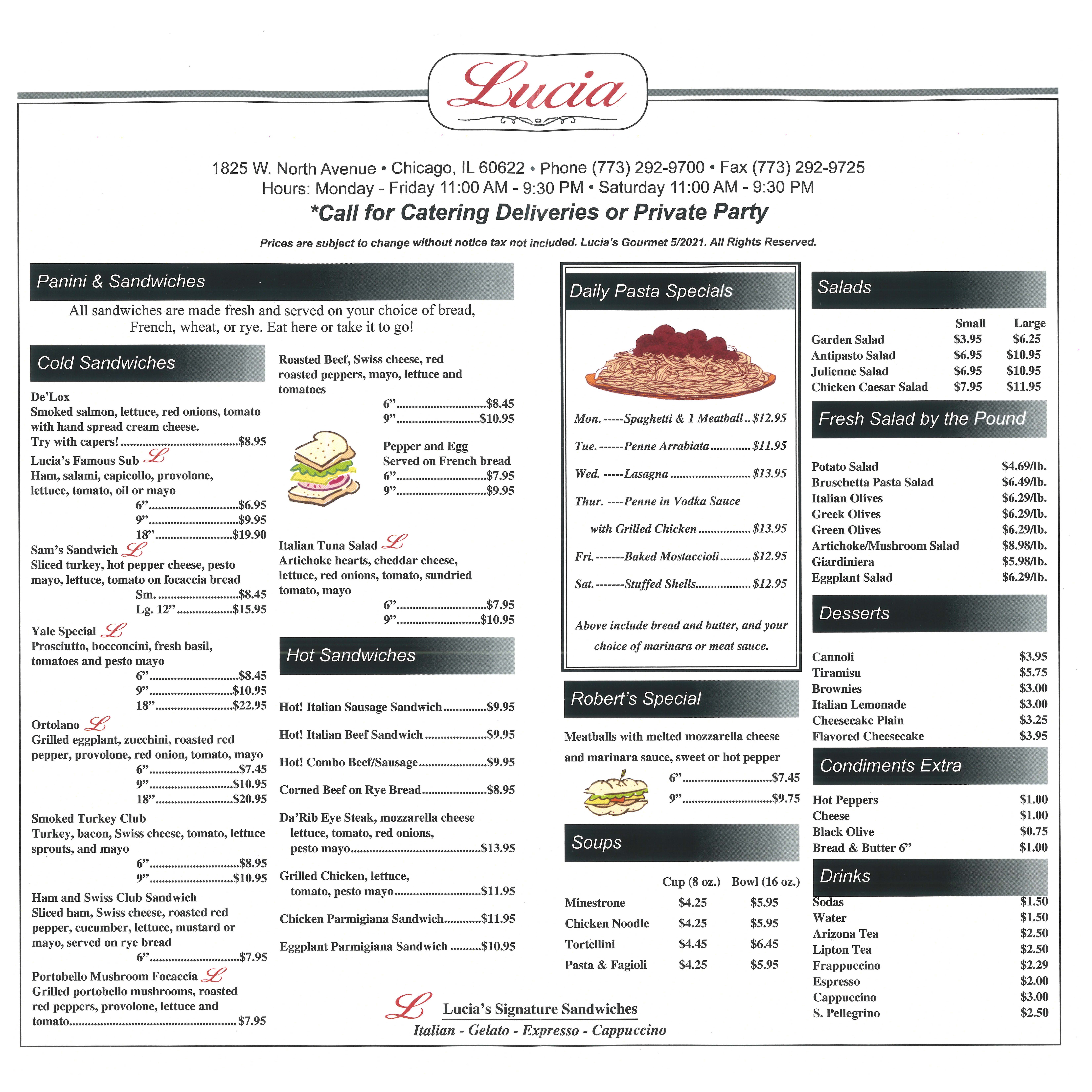 We have been privileged to be part of the neighborhood for over two decades and in 2017 we celebrated Lucia’s 15th year as a fixture at the corner of North Avenue and Honore. We have come to know and love our neighbors – celebrated milestones together and become a part of each others daily routines. Domenic, Lucia and our whole family and staff thank you for 15+ incredible years. We look forward to seeing each and everyone of you again soon to celebrate together. If you have yet to visit us, come on in- there’s always a spot at our table for you!